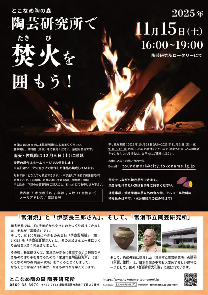 『陶芸研究所で焚火を囲もう!!』 毎年好評のイベントを今年も開催します。