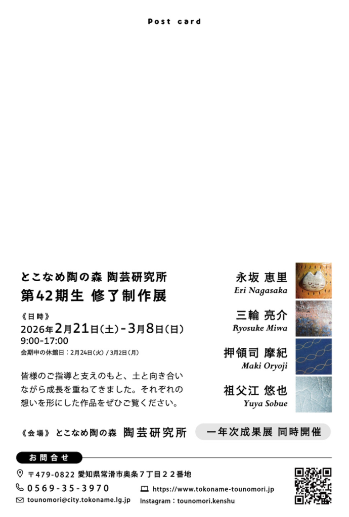 陶芸研究所において、2月21日(土)から「第42期生 修了制作展」が始まります。